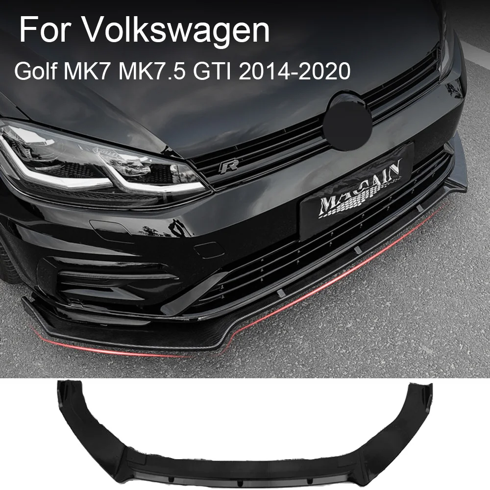 For Volkswagen Golf MK7 MK7.5 GTI 2014-2020 Glossy Black Car Front Bumper Lip Splitter Spoiler Diffuser Cover Trim